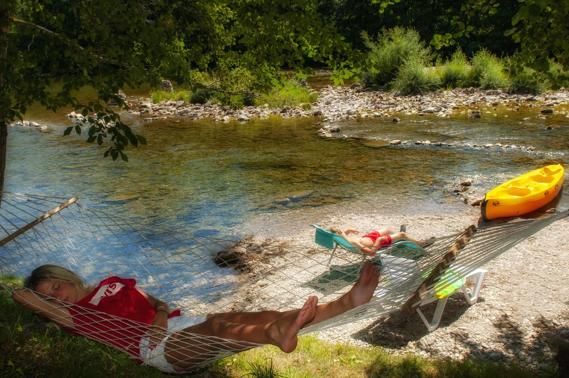 Quand vous arriverez au Camping après cette superbe journée, nous vous invitons à vous laisser aller à la rêverie dans notre Camping, à un moment de farniente dans un des hamacs installés au bord de la rivière sur notre plage privée. Vous pourrez ainsi déguster un verre de citronnade que nous avons le plaisir de vous offrir. Si vous avez envie, vous pouvez prolonger ce moment en profitant de notre cuisine et pizza maison.