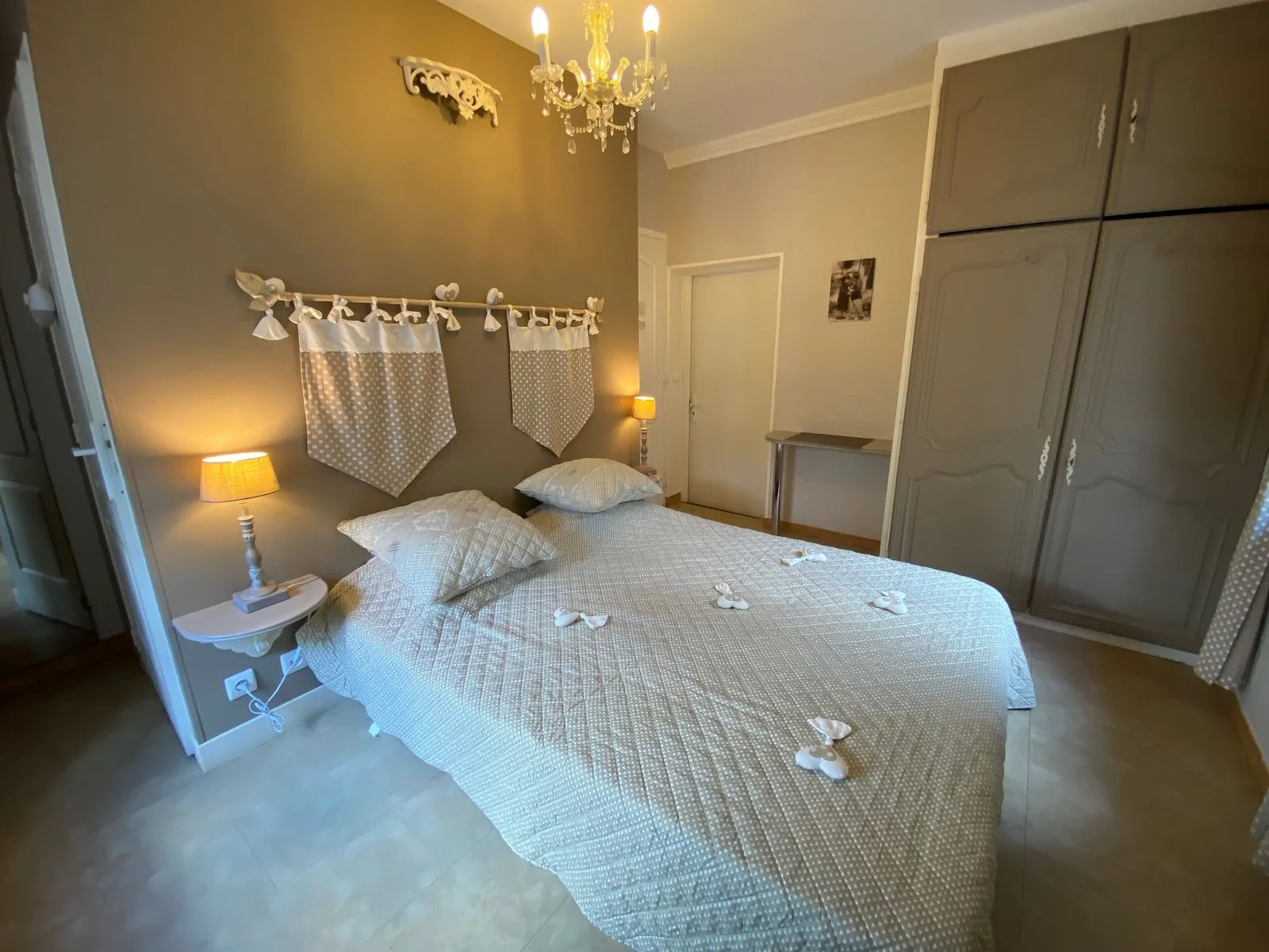 Au rez-de-chaussée : entrée, cuisine, séjour (canapé, télévision, accès internet/wifi, chauffage central). Au 1er étage : 2 chambres de 2 personnes, salle d’eau, wc indépendant, 1 chambre de 2 personnes, buanderie (lave-linge, sèche-linge). Terrasse privée close (15m²), salon de jardin, plancha.